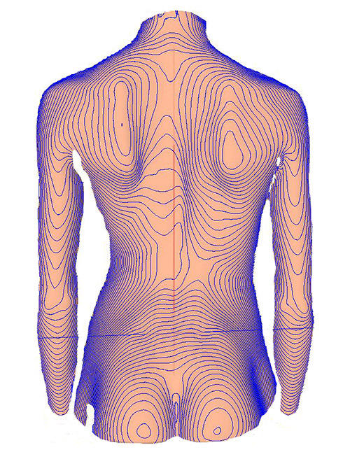 Die Untersuchung liefert mit dem Verfahren der Video-Rasterstereografie ein präzises Modell der Rückenoberfläche. Der Rücken wird in einem Raster aus gebündelten Lichtstrahlen abgebildet. Mit Hilfe modernster Computertechnik entsteht eine dreidimensionale Abbildung der Rückenform. Anhand der Oberflächenstrukturen wird der Verlauf der Wirbelsäule, der Beckenstand und die Rotation der einzelnen Wirbelkörper zueinander festgestellt. Auf der Grundlage dieser Daten erfolgt bei der weiteren Vermessung eine Überprüfung, ob ein Ausgleich mittels einer Einlegesohle oder einer Absatzerhöhung sinnvoll ist.